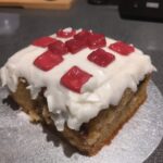 - Dye a small piece of marzipan red, cut into small squares, and apply to the top of the cake.